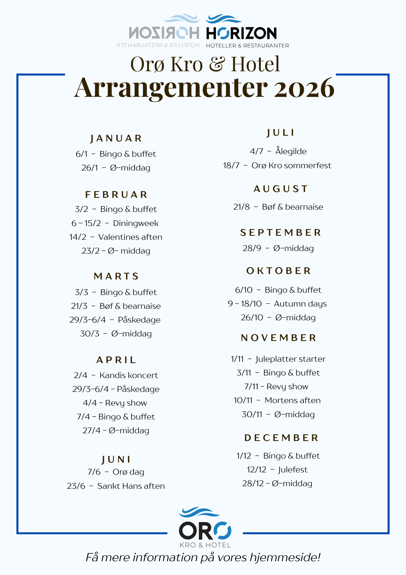 Wenn Sie ein unverbindliches Angebot wünschen, nehmen Sie bitte Kontakt mit uns auf - unter Tel.: 32 20 03 00 oder per E-Mail manager@orøkro.dk